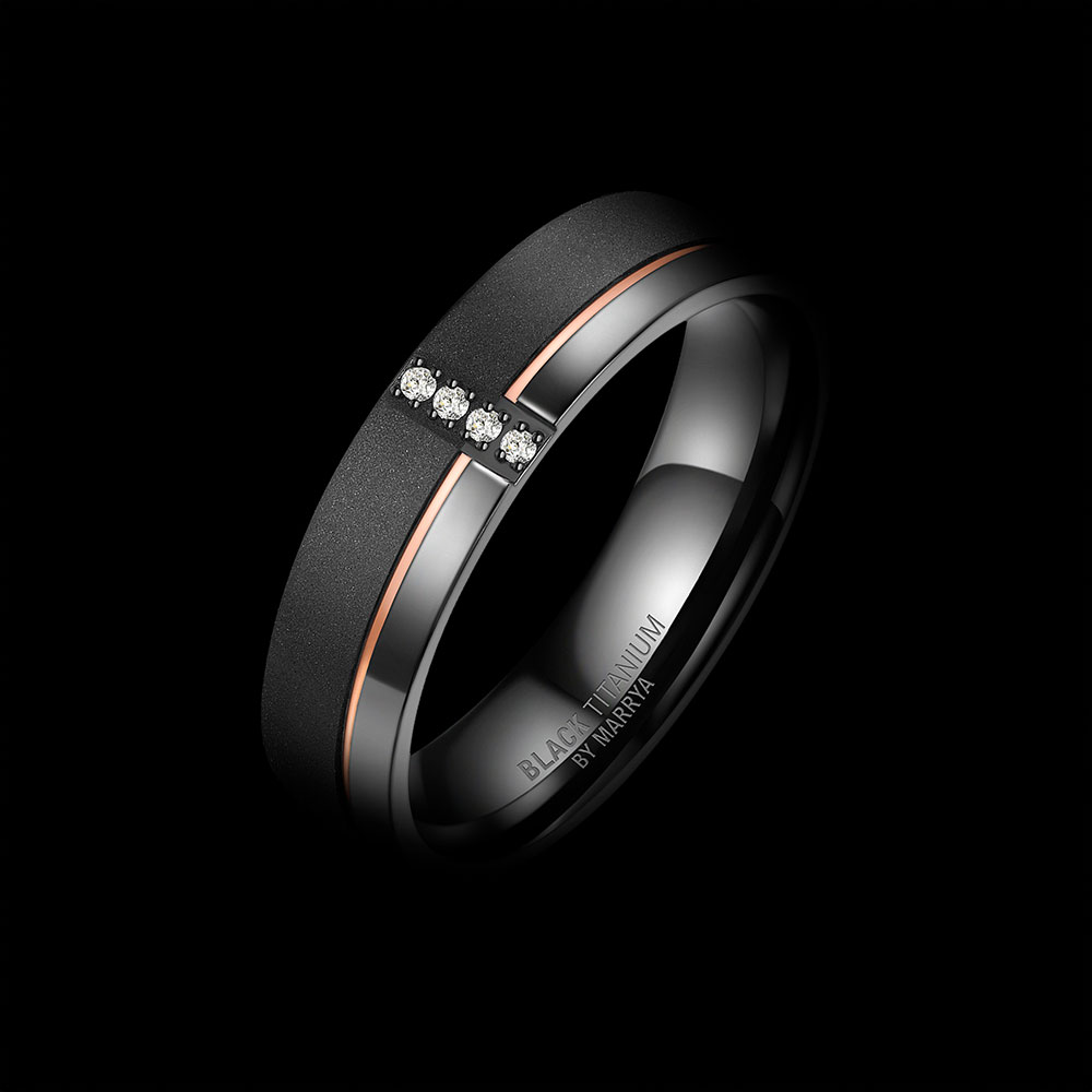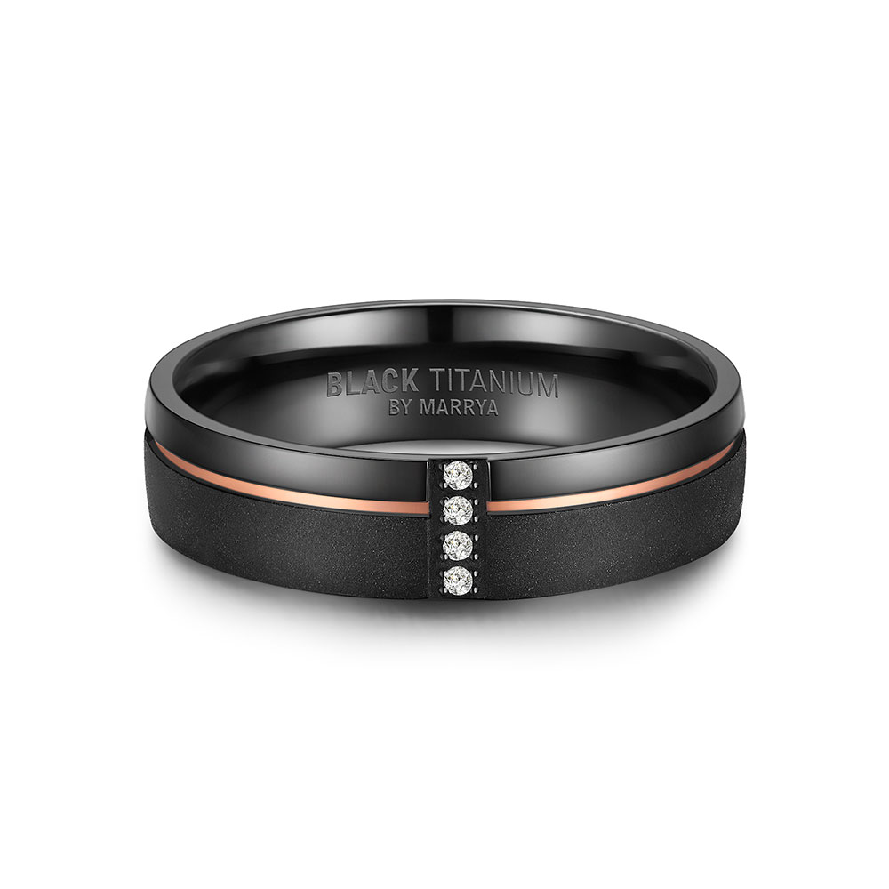 Gefertigt aus einer innovativen Mischung aus 51 % Zirkonium und 49 % Titan, ist dieser Ring außergewöhnlich leicht und dennoch extrem widerstandsfähig. Die schwarze Farbe entsteht durch ein aufwendiges Erhitzungsverfahren und bleibt dauerhaft erhalten. Eine edle 14K IP-Plattierung in Rosé- oder Gelbgold sorgt für eine luxuriöse Veredelung und unterstreicht den exklusiven Charakter dieses Rings.