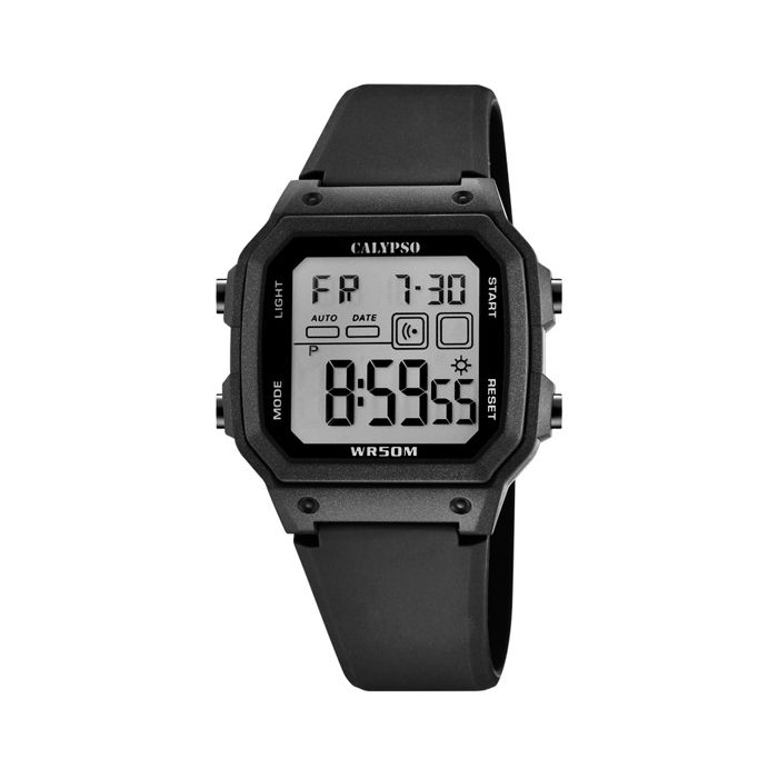 Die Calypso Herren Digitaluhr K5812/2 ist eine praktische und stilvolle Uhr, die perfekt für den Alltag und sportliche Aktivitäten geeignet ist. Mit ihrem quadratischen Design, einem schwarzen Silikonarmband und vielseitigen digitalen Funktionen bietet diese Uhr eine ideale Kombination aus Komfort und Funktionalität.