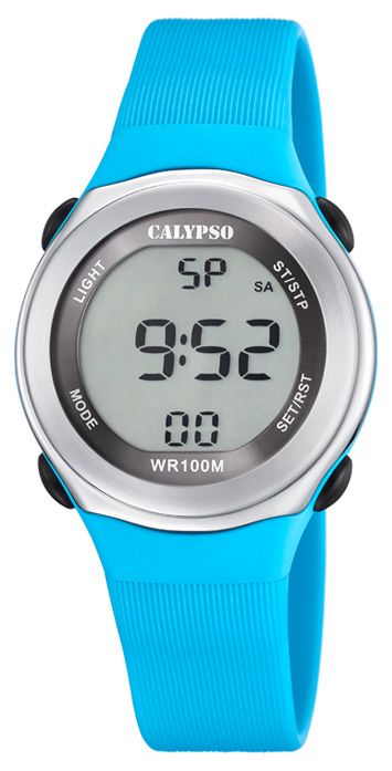 Calypso Kinderuhr Digitaluhr hellblau Armbanduhr K5822/1, Uhrendeckel Edelstahl, Wasserdichtigkeits-Klassifizierung 10 ATM, Dornschließe, Beleuchtung, Stoppuhr, Alarmfunktion, Timer, 12/24 Stundenanzeige, Datumsanzeige, Durchmesser ca. 31 mm