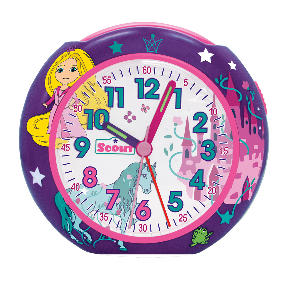 Ein toller Wecker. Deine Lieblingsmotive beginnen bereits auf dem Gehäuse und gehen in das Zifferblatt über. Das Uhrwerk ist sehr laufruhig und nichts ‘tickt’. Eine Beleuchtung lässt dich in der Nacht das Zifferblatt ablesen und dank der Snooze Taste ist verschlafen fast unmöglich. Die gezeigten Motive auf dem Zifferblatt sind Original Scout Ranzenmotive.