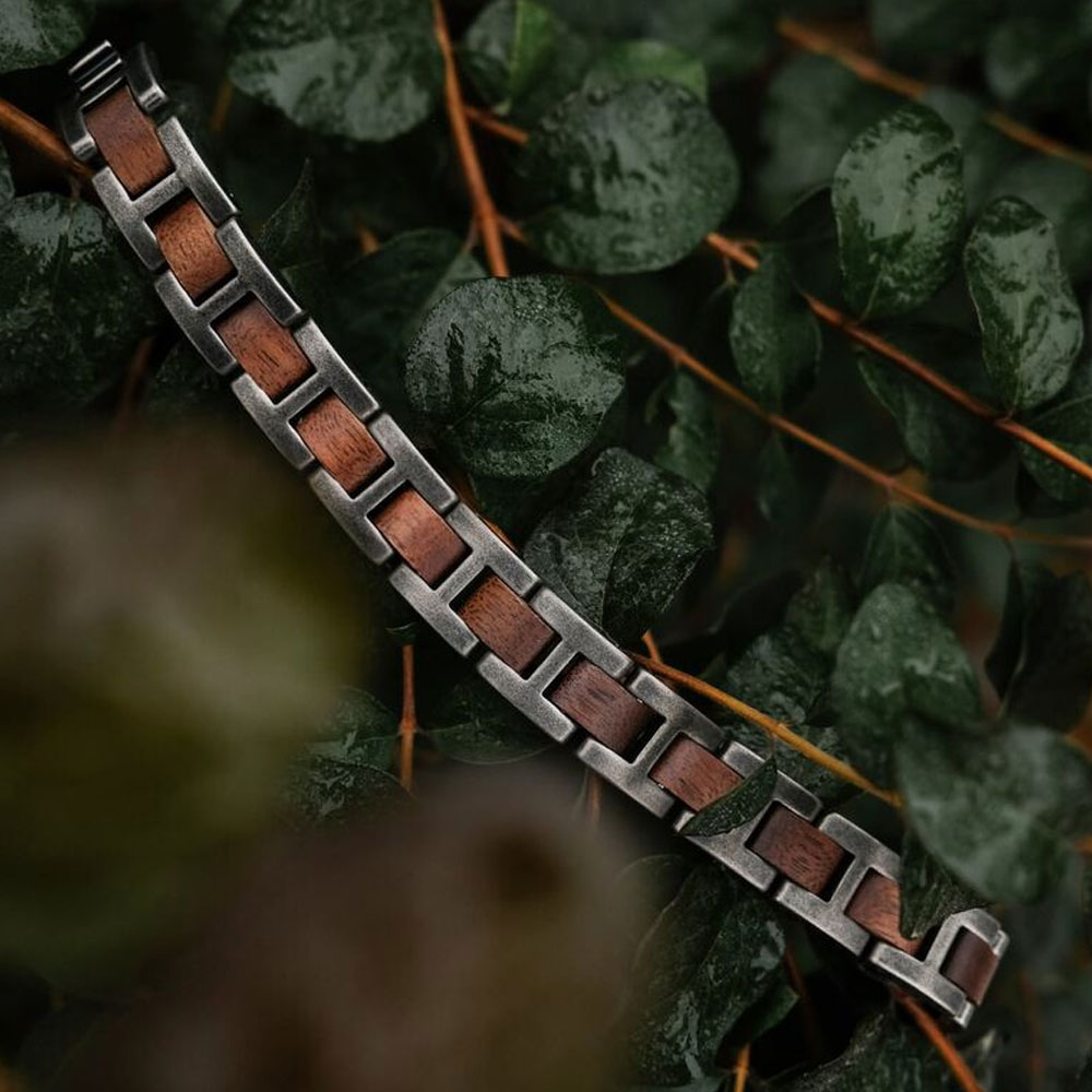 Holzkern Acoustic Herren Armband Walnuss & Antiksilber – Leise Eleganz mit Charakter