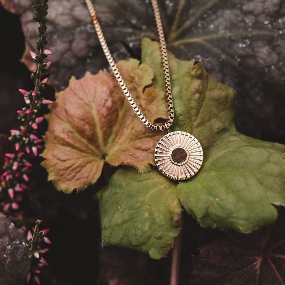 Holzkern Stencil Damenkette Walnuss & Rosé – Ausdrucksstarker Schmuck mit natürlicher Eleganz
