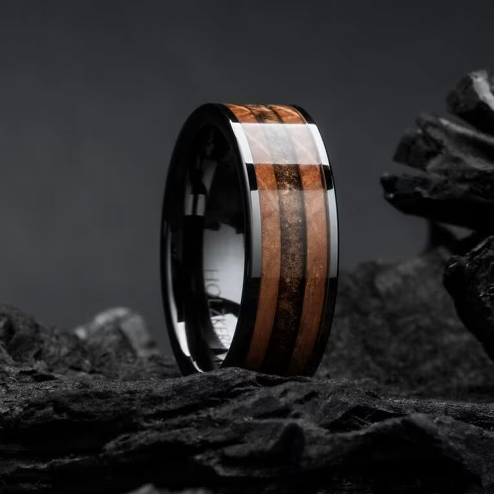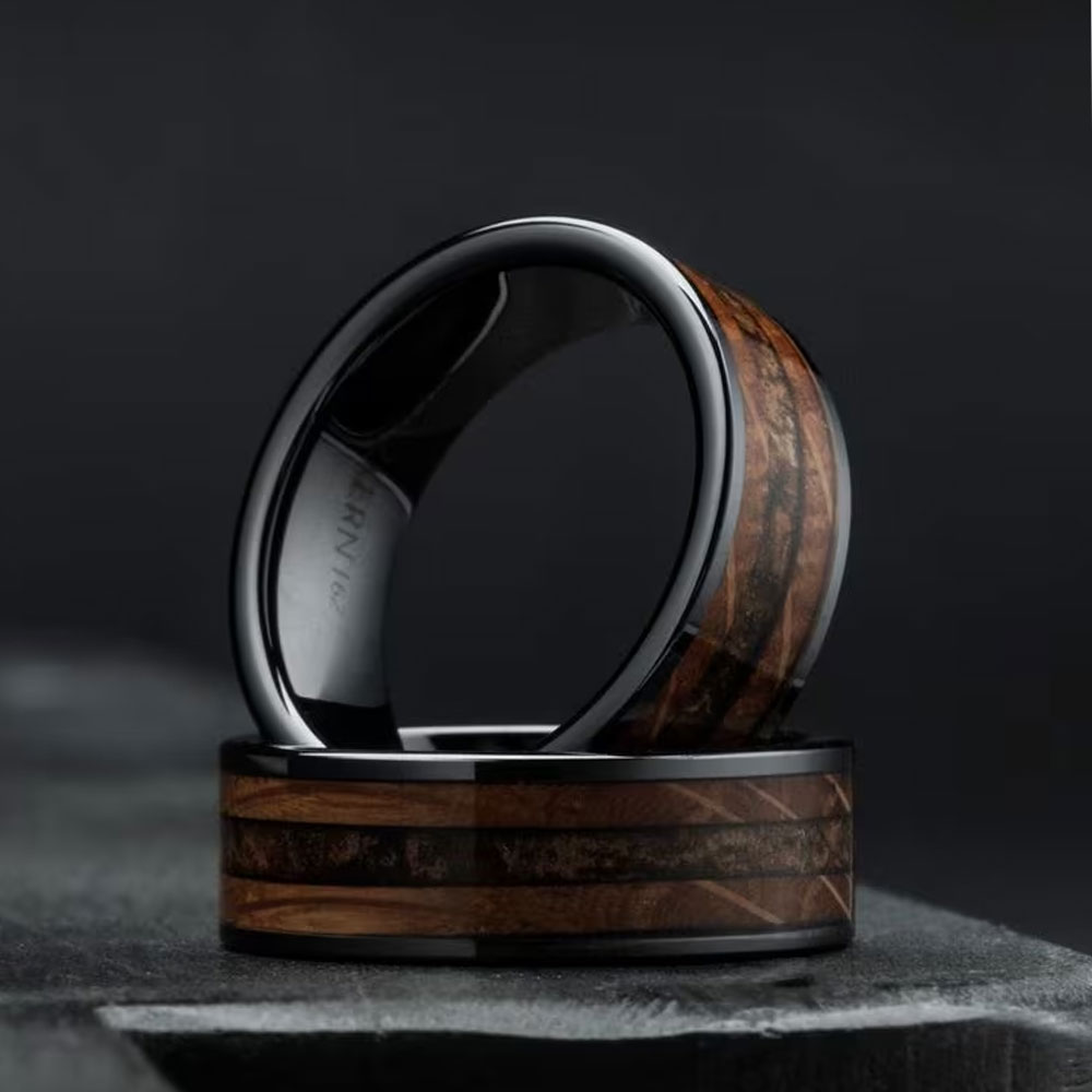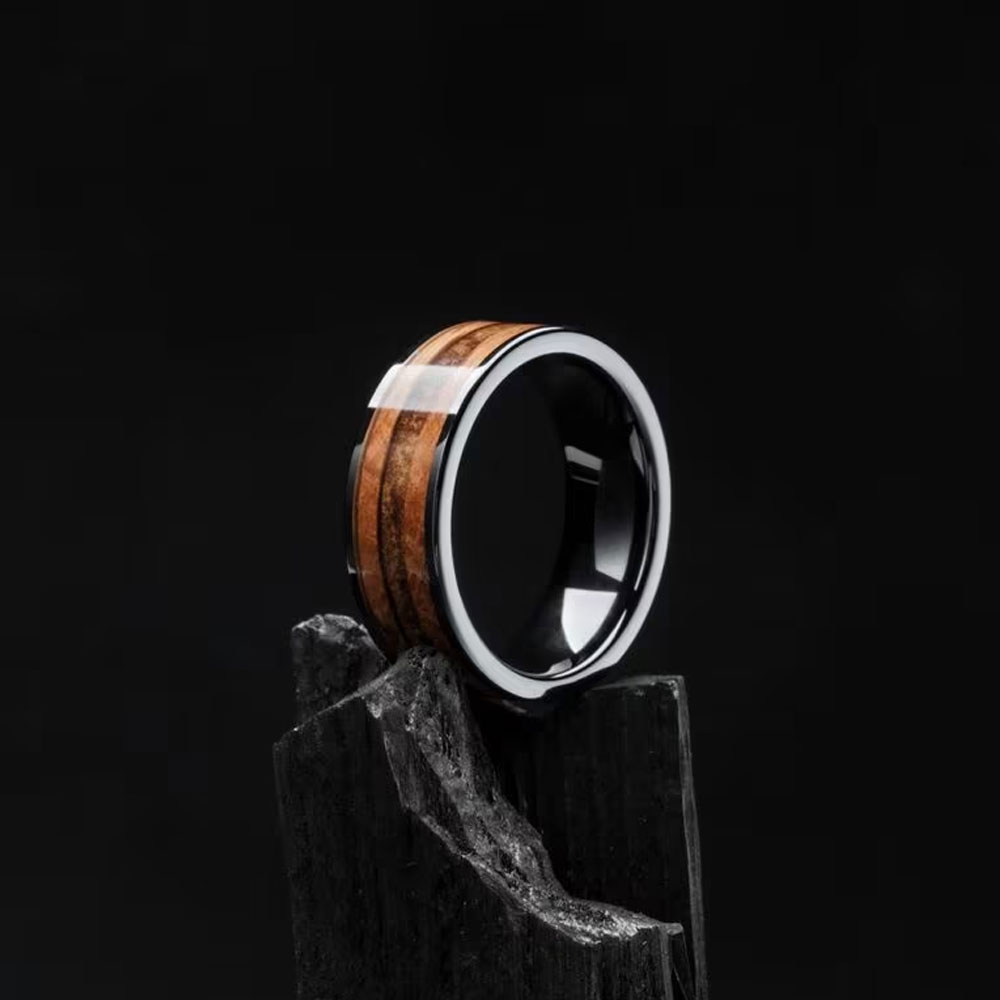 Der Ring ist 8 mm breit und in verschiedenen Größen erhältlich, sodass er sich optimal an jeden Finger anpassen lässt. Für das äußere Design werden echtes Whiskeyholz und Tabakblatt verwendet, während die Innenfläche aus robuster schwarzer Keramik gefertigt ist. Dank HydroDefense Technology ist der Ring wasserfest, langlebig und widerstandsfähig gegenüber den täglichen Beanspruchungen.
