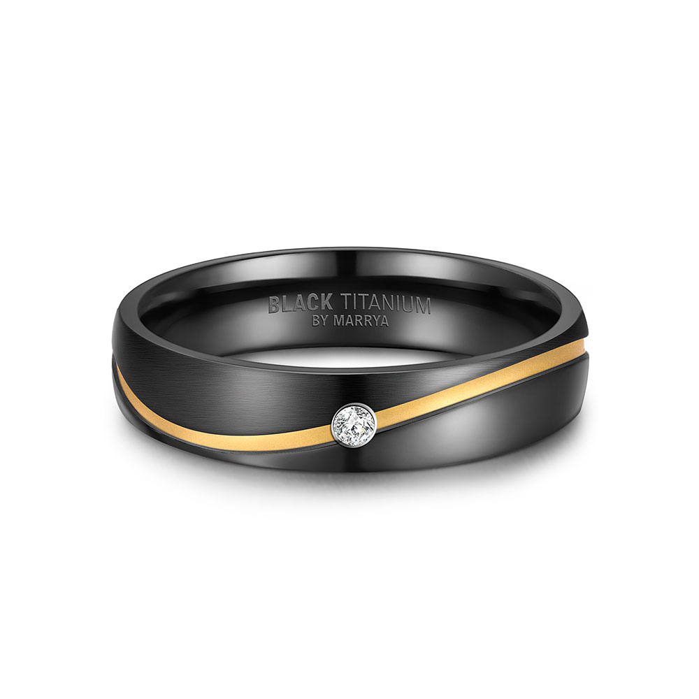 Hergestellt aus einer innovativen Mischung aus 51 % Zirkonium und 49 % Titan, ist dieser Ring extrem leicht und dennoch widerstandsfähig. Die schwarze Farbe entsteht durch ein spezielles Erhitzungsverfahren, das für eine dauerhaft intensive Farbgebung sorgt. Eine edle 14K IP-Plattierung in Rosé- oder Gelbgold verleiht dem Ring zusätzlichen Glanz.